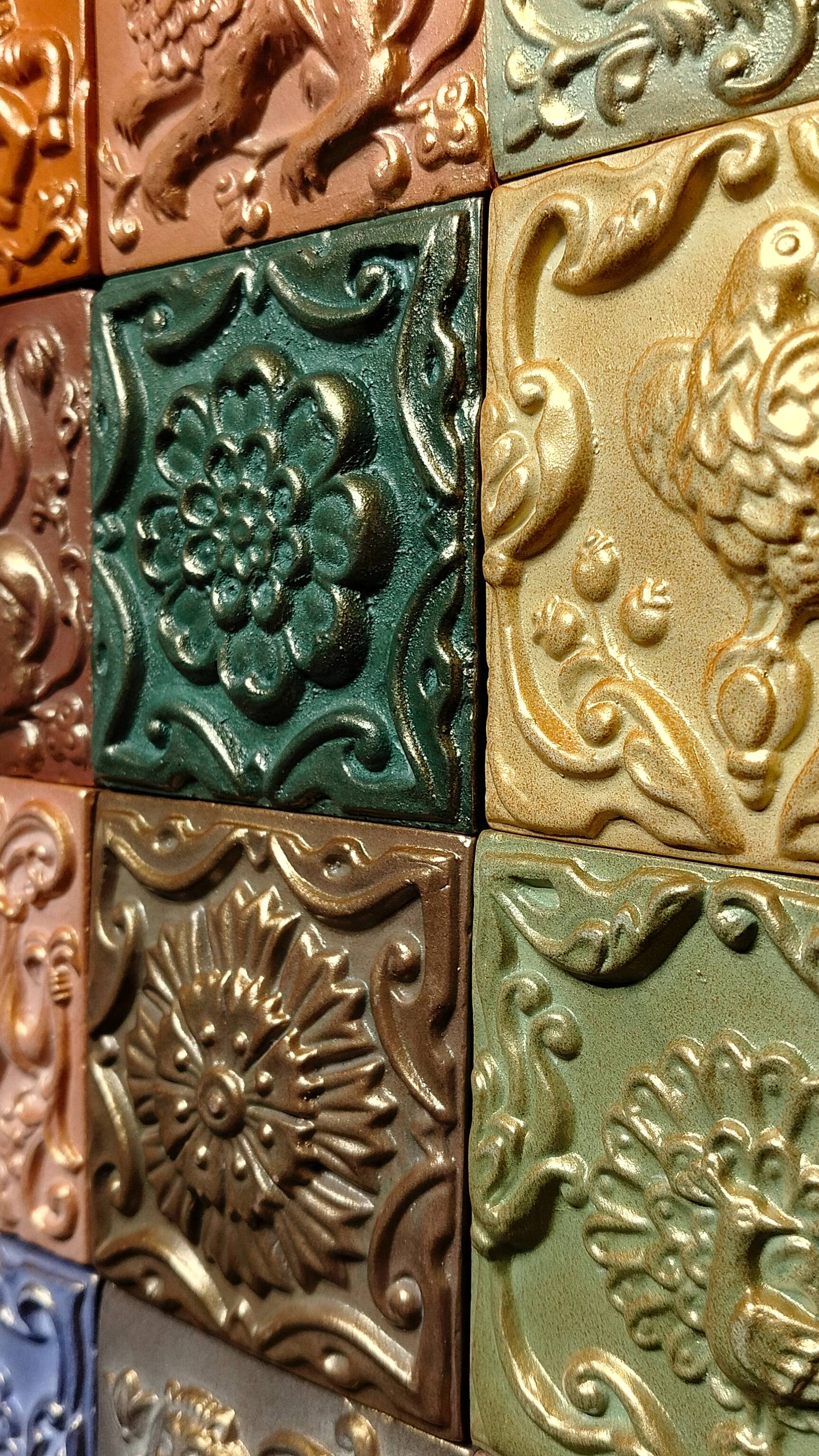 - Дизайн: В коллекции "Сказка" 24 уникальных рельефных изображения сказочных животных, цветов и мифических существ, вдохновленных ярославскими изразцами! В комплекте гарантированно представлены все 16 цветов (артикулов), но виды изображений на плитках выбираются произвольно из 24 возможных (повторения вероятны).