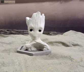 Горшок-кашпо цветочный сувенирный Kamastone Грут в ожидании, 0932, белый, с подставкой, 1042, серый