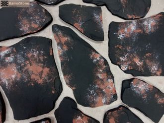 Декоративный облицовочный камень Kamastone Урал 4701, разноформатный, черный с белым и красно-коричневым,